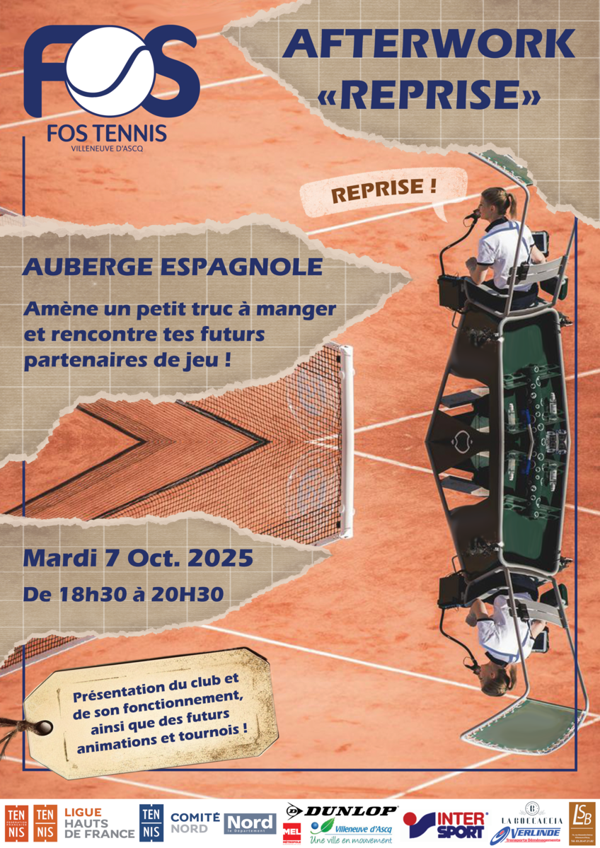 L'équipe animation du FOS TENNIS vous propose un afterwork pour fêter la reprise des cours !